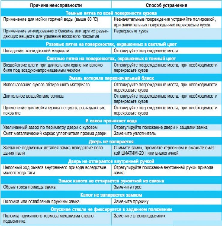 Магчымыя няспраўнасці кузава і спосабы іх ухілення