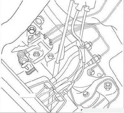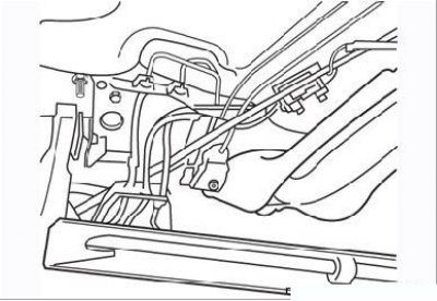 Малюнак 7.8. Адлучэнне рэгулятара ціску (вылучаны) ад кранштэйна на бэльцы задняй падвескі