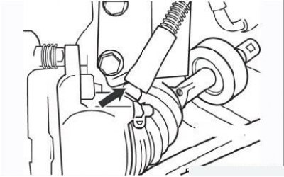 Малюнак 7.3. Паслабленне зацяжкі гайкі тармазнога шланга (стрэлка)