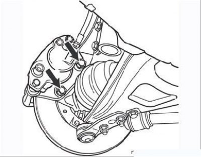 Малюнак 7.4. Ніты мацавання суппорта да паваротнага кулака (стрэлкі)
