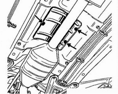 11. Адкруціце дзве гайкі мацавання і зніміце цеплавы экран рулявога механізму.