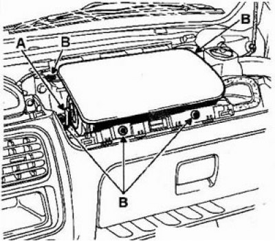 Заўвага. Перад здыманнем падушкі бяспекі заблакуйце блок кіравання SRS з дапамогай дыягнастычнага тэстара.