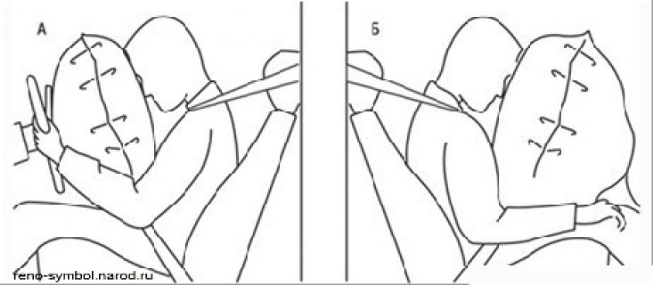 Малюнак 2.13. Спрацоўванне падушкі бяспекі: А - кіроўцы; Б - пасажыра