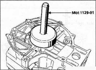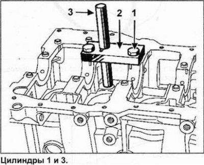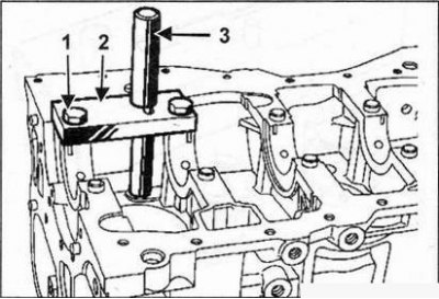 1. Устаноўка ўкладышаў у блок цыліндраў. Усталюйце прынаду Mot. 1493-01 на гняздо карэннага падшыпніка на блок-картэры.