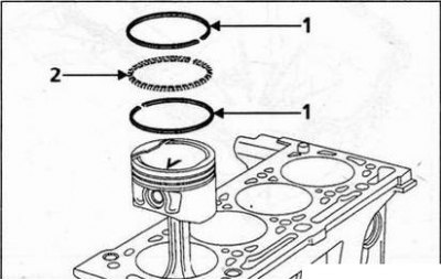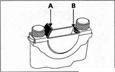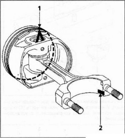 Усталюеце поршань так, каб пазнака "А" (1) на яго дно знаходзілася наверсе.