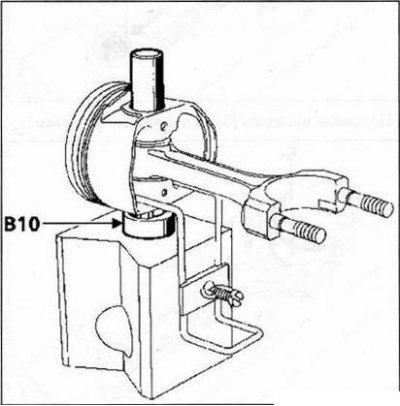- Усталюеце кольца В10 на падстаўку і абкладзеце поршань на гэта кольца, замацаваўшы яго пальцам.