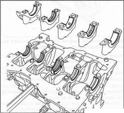 2. Усталёўка ўкладышаў у вечкі карэнных падшыпнікаў.