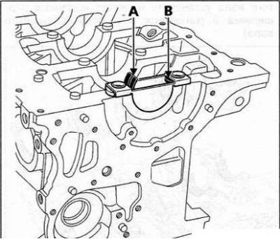 - Усталюеце ўкладышы з канаўкамі ва ўсе гнёзды падшыпнікаў у блок-картэры.