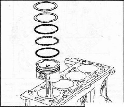 На днах поршняў нанесены пазнакі "А", якія паказваюць кірунак у бок махавік.