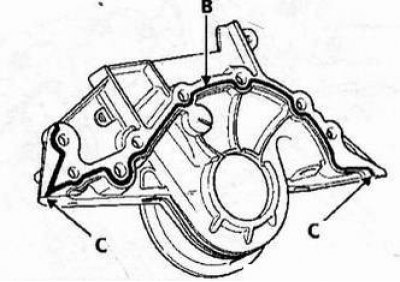 Заўвага. Не дапушчайце трапленні алею на паверхню для пракладкі вечка галоўкі блока цыліндраў.