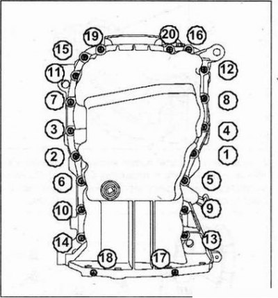 Зацяжка ўсіх нітаў вырабляецца момантам 20 Нм у паказаным на малюнку парадку.