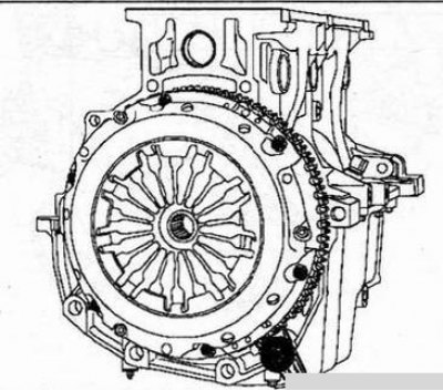 Увага! Неабходна абястлусціць канцавую шыйку каленчатага вала, пасадкавыя паверхні зубчастых шківаў механізму газаразмеркавання і каленчатага вала, каб пазбегнуць праслізгвання паміж механізмам газаразмеркавання і каленчатым валам, якое можа прывесці да пашкоджання рухавіка.