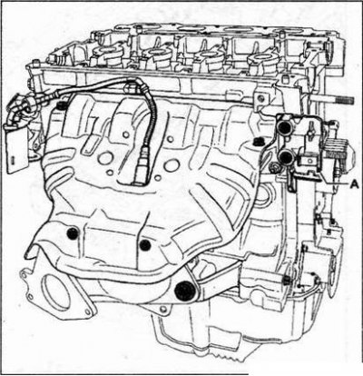 - корпус дросельнай засланкі, зацягнуўшы балты яго мацавання (А) з момантам 13 Нм;