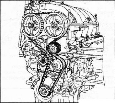 1. Перш чым праверыць правільнасць усталёўкі фаз газаразмеркавання, пераканайцеся ў правільным становішчы пазнак нацяжнога роліка.