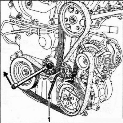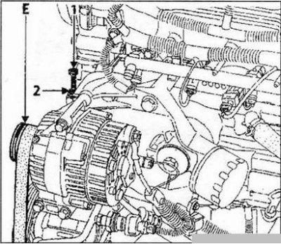 Заўвага. Рэмень прывада навясных агрэгатаў мае пяць клінаў, а шкіў генератара і шкіў помпы ўзмацняльніка механізму рулявога кіравання выкананы 6-ручьевыми; таму пры ўсталёўцы прыветнага рамяня абавязкова трэба пакідаць вольным вонкавы раўчук шківаў (Е).
