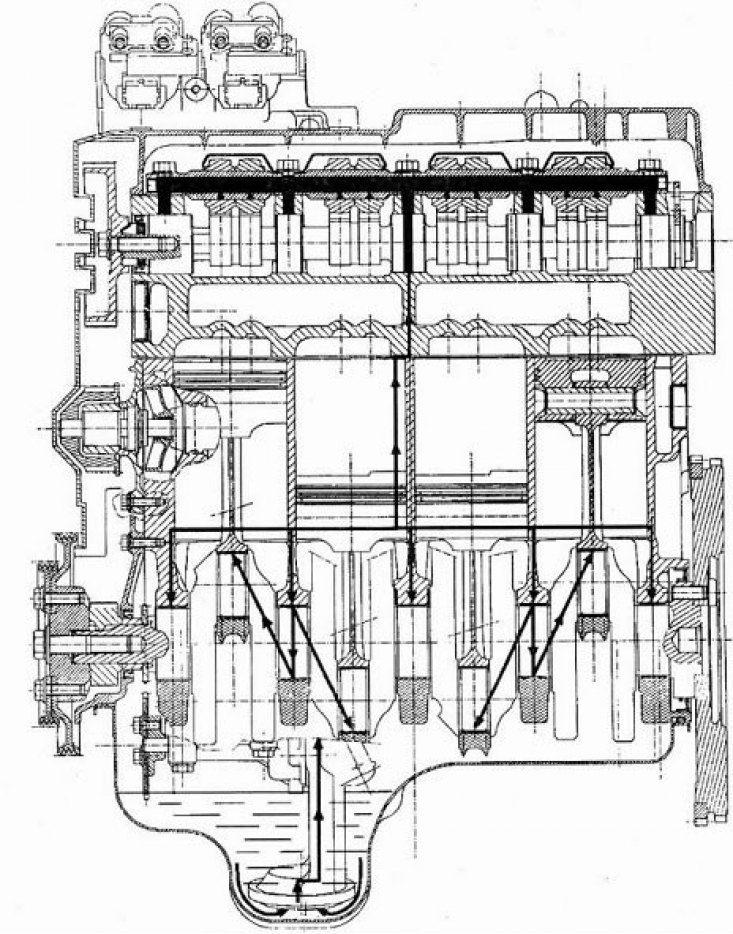 Схема сістэмы змазкі (падоўжны разрэз)