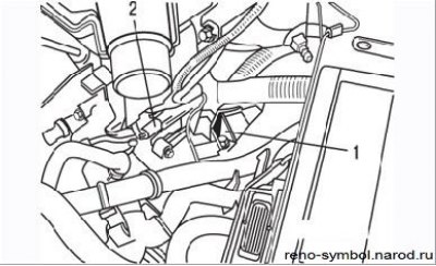 Малюнак 4.40. Кранштэйны мацавання джгута (1) правадоў, датчык (2) ВМТ